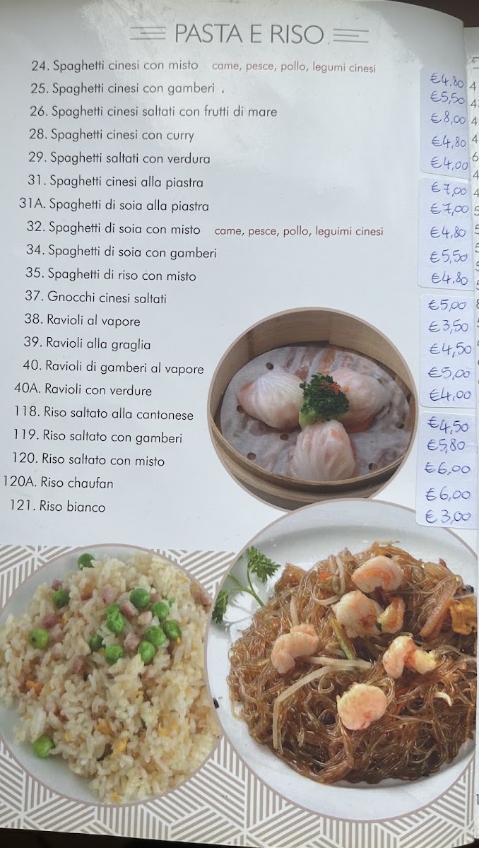 Guests can enjoy traditional favorites such as the Pizza Ai Funghi Porcini, alongside lighter, fresh options like Spaghetti Di Soia Alle Verdure or the warming Tofu In Salsa Piccante. The menu also features heartier dishes like Grigliata Di Pesce and Cantonese-style Riso Saltato, making it easy to find something that fits a variety of moments.